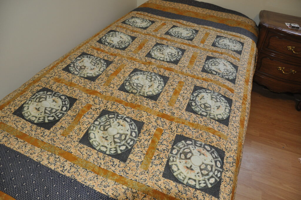 The quilt was made for my husbands mother when she was in her late 80’s when it was completed and comforted here by reminding her of her mother and her childhood in Toronto in 1930’s.